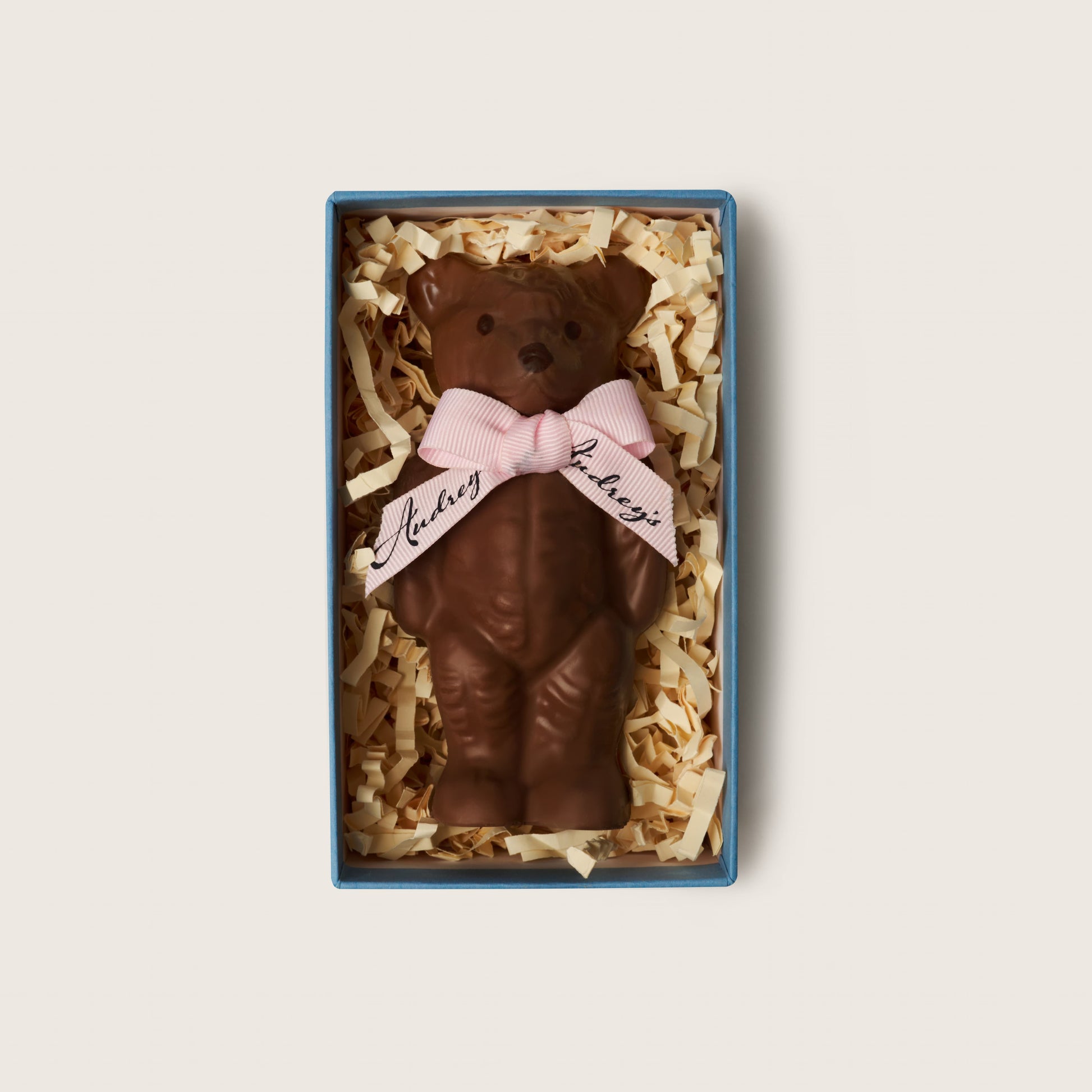 Meet Bessie the Bear — a handmade hollow chocolate teddy, standing 12cm tall. Lovingly crafted in Sussex using the finest Valrhona chocolate for a smooth, luxurious finish, and carefully decorated with dark chocolate details. Each bear is beautifully finished with a coloured ribbon — ribbon colours will vary, making every Bessie unique.